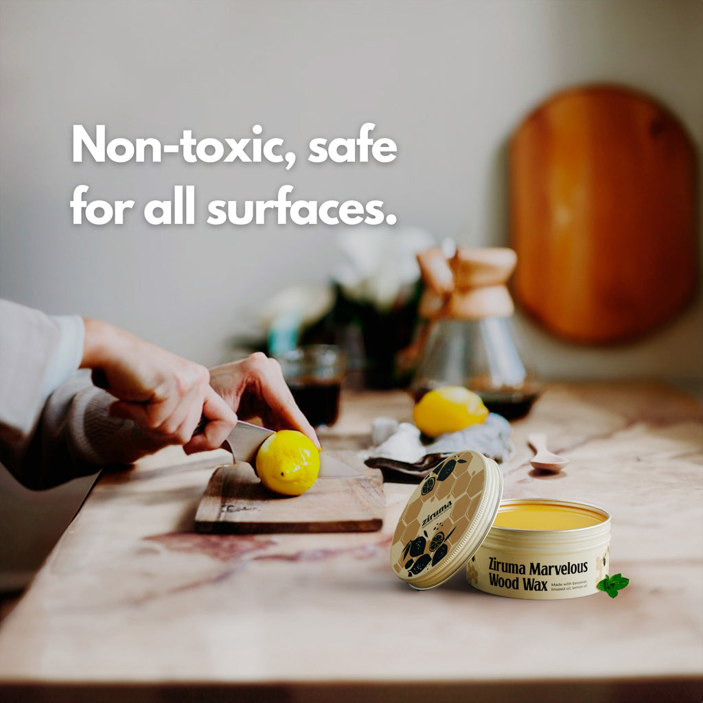 Natural and Food-Safe: Beeswax, flaxseed oil, and lemon oil are natural ingredients safe for food contact. When properly applied and cured, this formula guarantees a protective layer on your kitchen surfaces, keeping them safe for food.