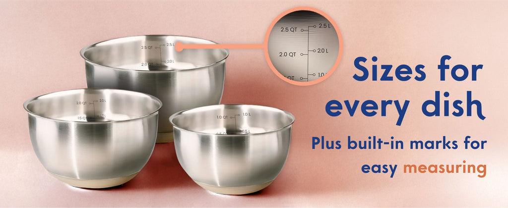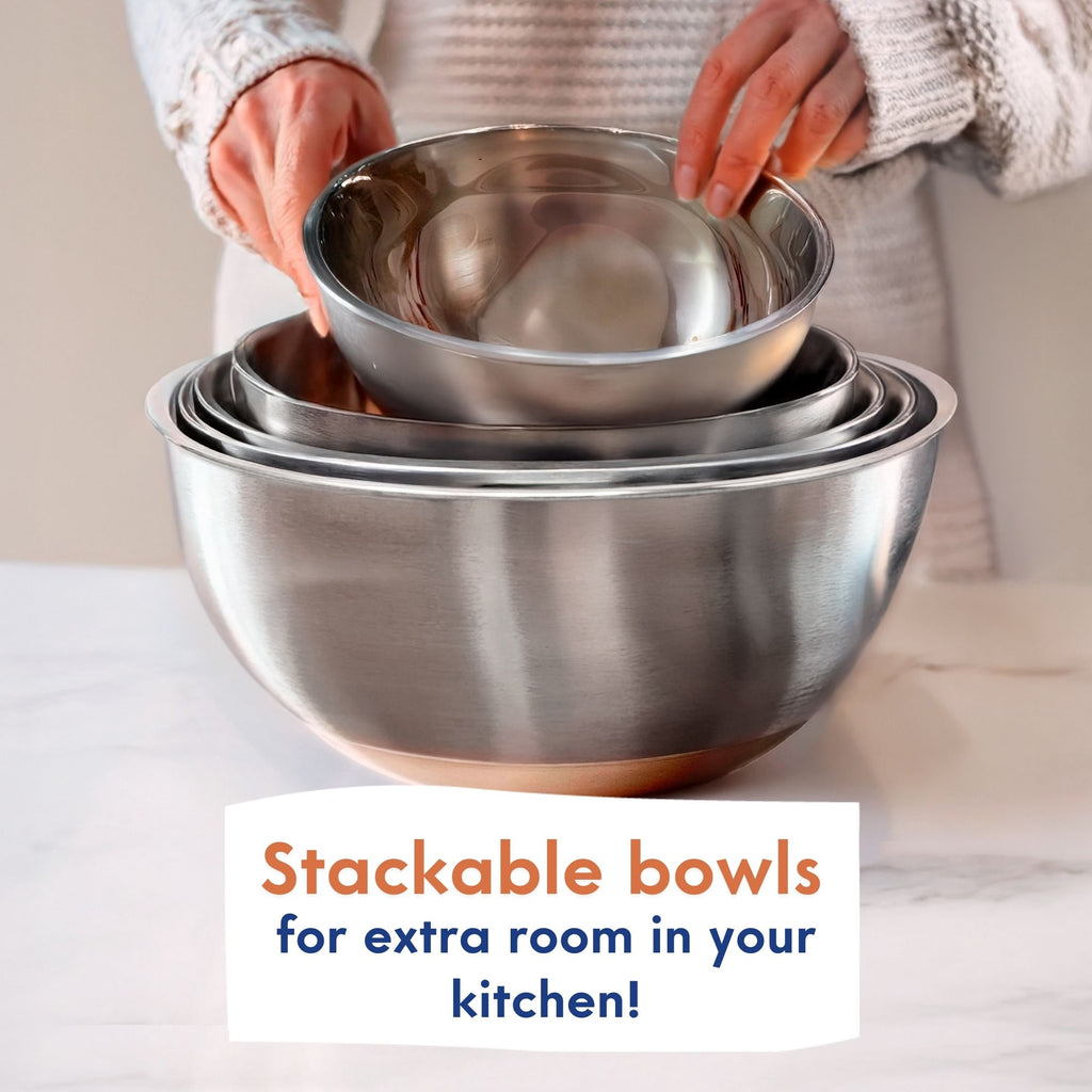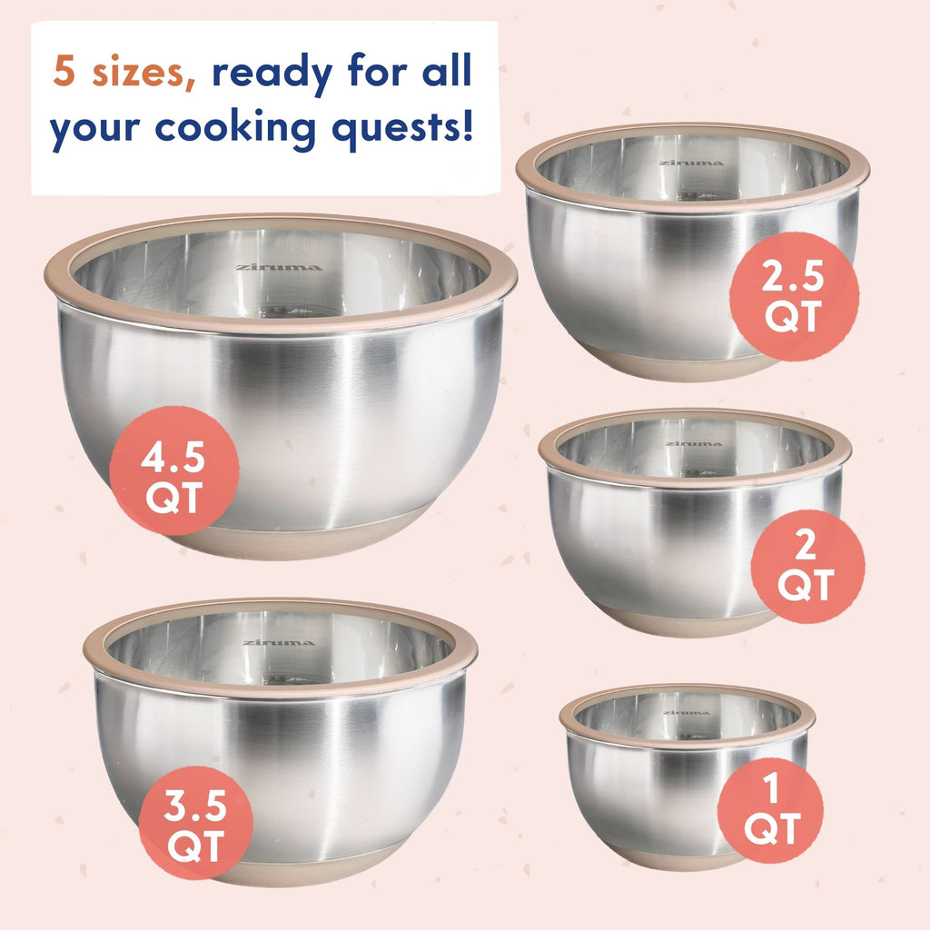 Non-Toxic Stainless Steel Surgical Grade Mixing Bowls Set with Glass Lids and platinum Silicone (5-Piece Set)