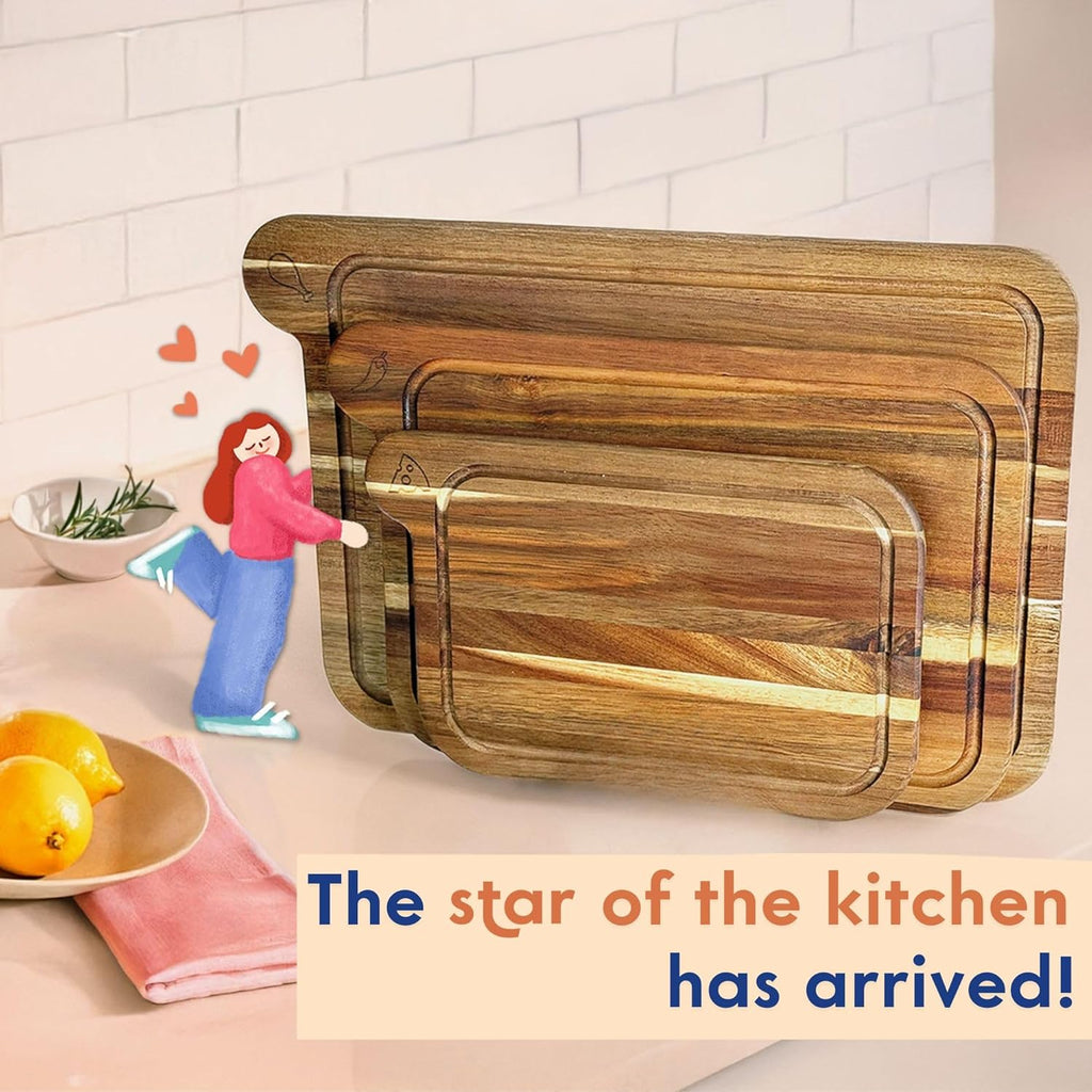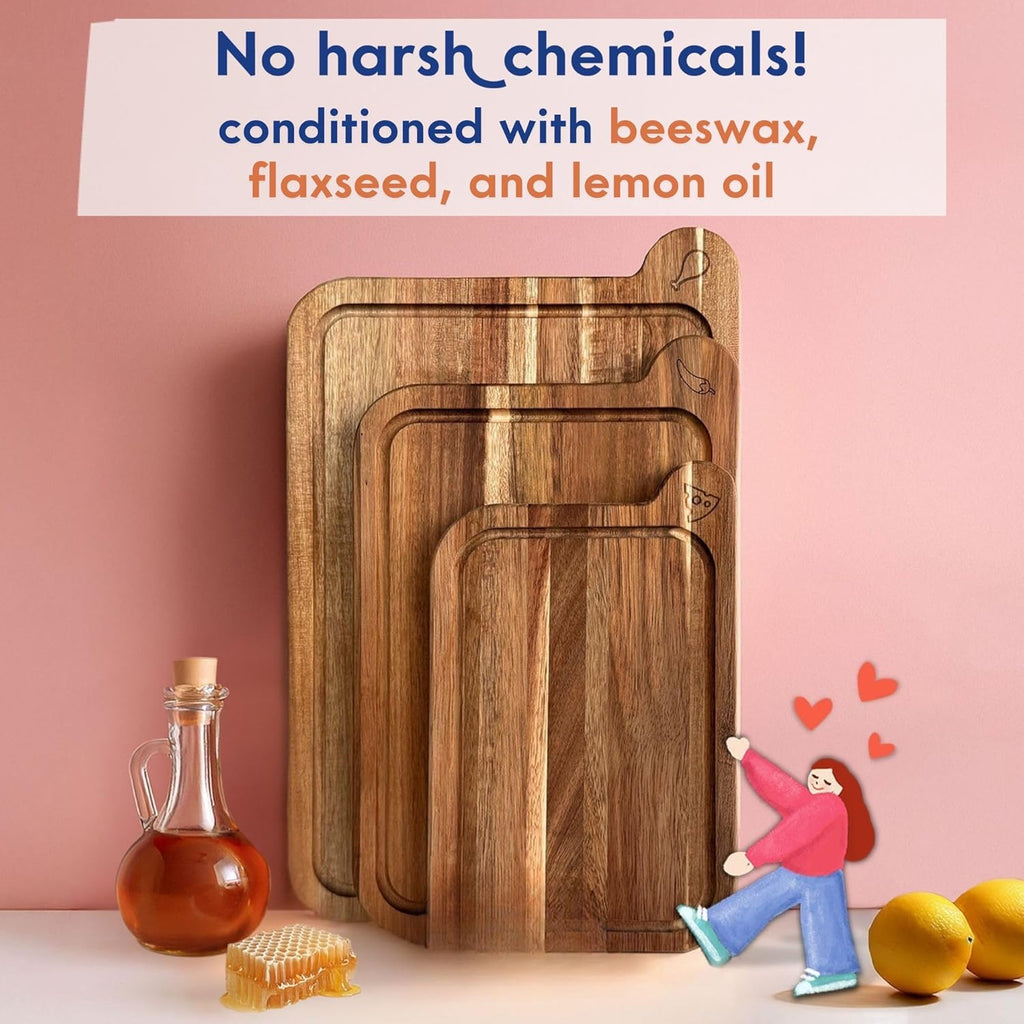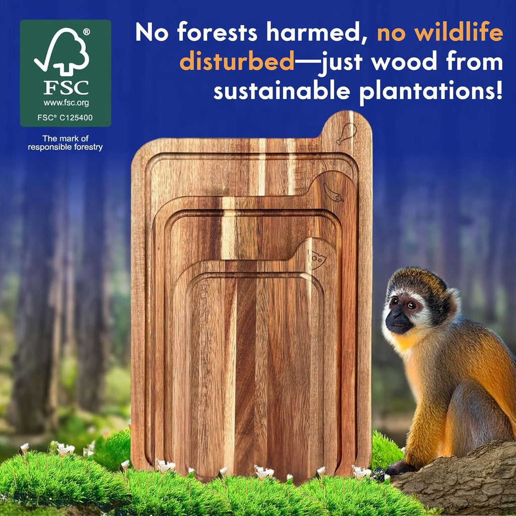 Non-Toxic Cutting Board Set | FSC Acacia Wood | Mineral Oil Free | 3 Piece Set | Eco-Friendly Kitchen Gift