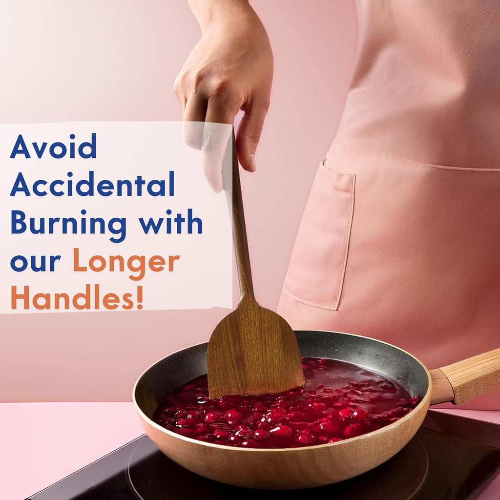 Non-Toxic Cooking Utensils 6-Piece, Glue-Free & One-Piece Wooden Spoons, Natural Wooden Set with Plant-Based Finish, Free of Chemicals.
